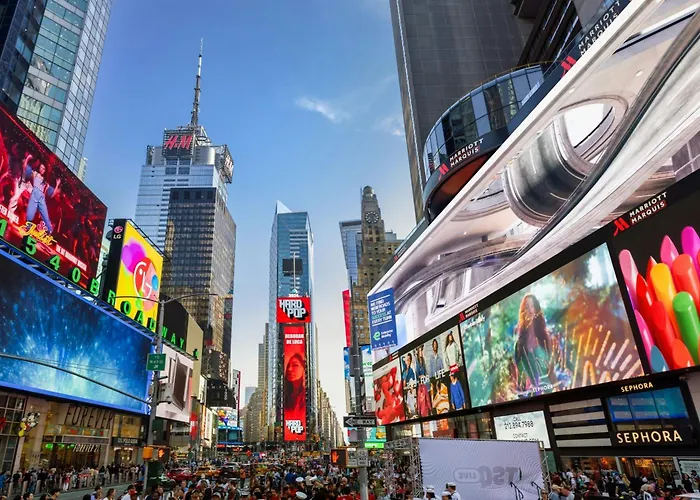 El Hotel New York Marriott Marquis, de 49 pisos cuenta con 1008 habitaciones y está a 900 metros del Edificio Empire State. Este hotel ofrece aparcamiento privado en las instalaciones.